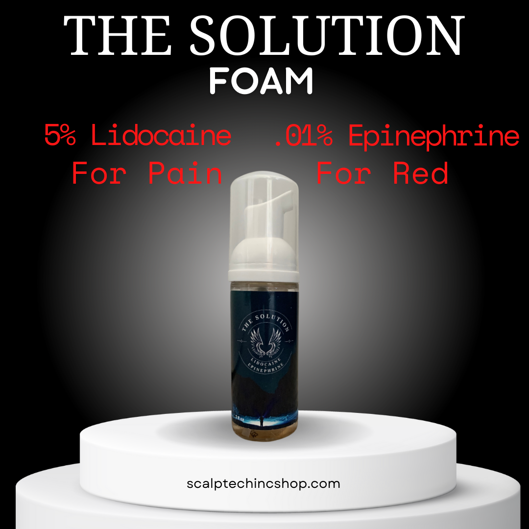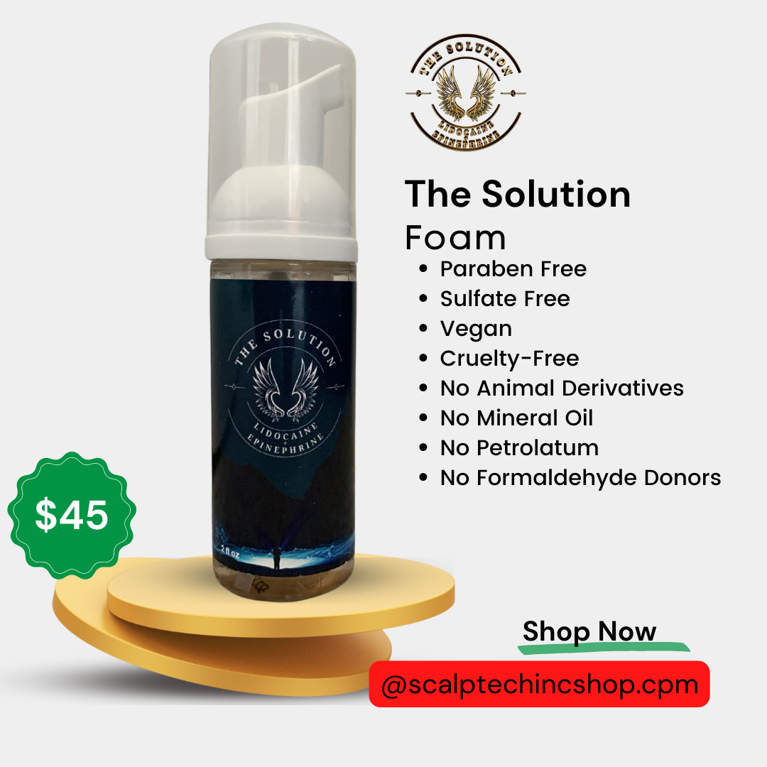 Scalp Tech Inc. has created The Solution Foam, a groundbreaking topical foam that offers safe and effective relief from pain, redness, and inflammation with natural preservatives while being free of harsh Parabens. Its unique combination of Lidocaine HCI (5%) & Epinephrine HCI (.01%) provides fast-acting relief so your clients can have a better tattooing experience!